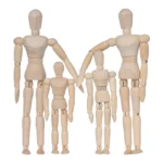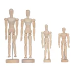 Assorted manikins: Lifelike figures with adjustable and moveable joints, essential for accurately evaluating shapes in drawing and modeling