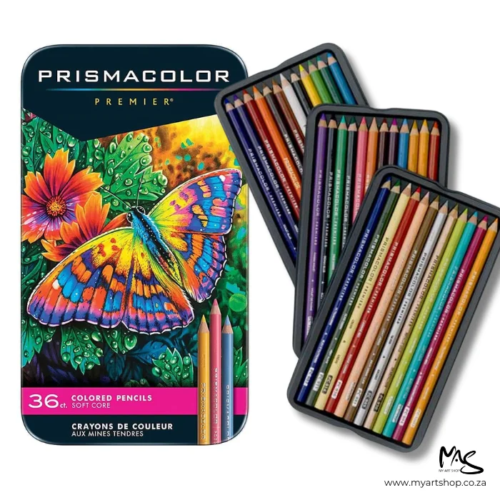 • Prismacolor Premier Coloured Pencils are available in the following sets: 12’s / 24’s / 36’s / 72’s and 150’s