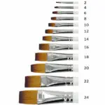 Flat:Â The flat version is particularly well suited for spreading paint, creating even surfaces and glazing. The shape is also perfect for painting corners. With the brush edge, fine lines can be drawn.
