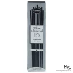 Coates Willow Charcoal Sticks offer an indispensable tool for fine artists, crafted from two-year-old willow rods for exceptional quality. These thin sticks are perfect for fine, detailed drawing. Made entirely from willow grown on the Coates English Willow farm, this willow charcoal is a completely natural product. Upon closer inspection, you’ll notice the marks where the leaves have been removed from the willow stick, revealing the soft central pith at its core. The sizes of the charcoal sticks may vary, adding to the uniqueness of each piece. With a smooth and consistent texture, these sticks ensure the best results, producing a rich black hue with every velvety smooth stroke. The versatility of willow charcoal shines through as it can be easily erased and marks can be fixed in place with a fixative, allowing for precise adjustments in your artwork. Each box includes 10 sticks roughly 2-3mm in diameter.