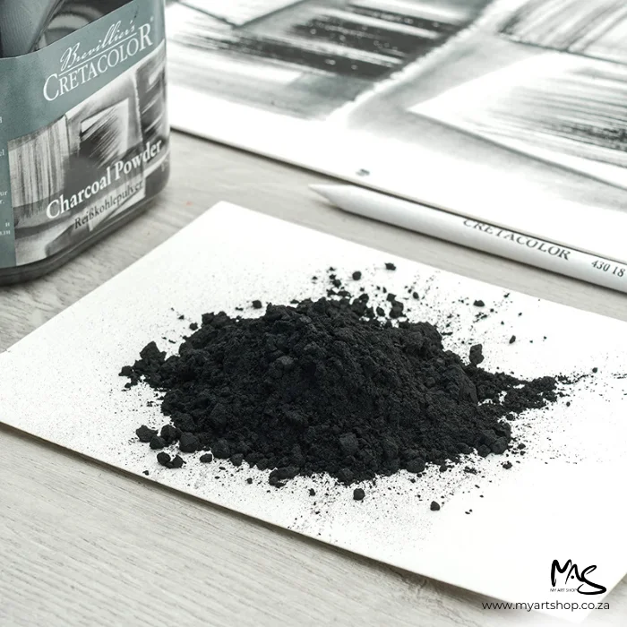Cretacolor Charcoal Powder is a fine-grained charcoal powder that opens up special artistic techniques. It is particularly suitable for creating images in large formats, where the focus is on tonal transitions and contrast effects. The charcoal powder can be applied to paper and other absorbent surfaces with a cloth, brush or even the fingers. It is also obvious to use it together with, for example, charcoal pencils and combine their precise lines with surfaces of smudged charcoal powder.