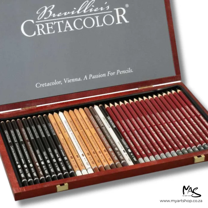 • The Cretacolor Sketch and Graphite Wooden Box Set contains an impressive 36 pieces.