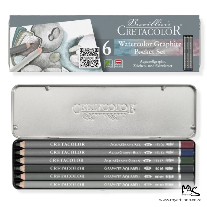 • The Watercolour Graphite Pocket Set of 6 includes the original Graphite Aquarelle pencils in three grades of hardness HB, 4B, and 8B.