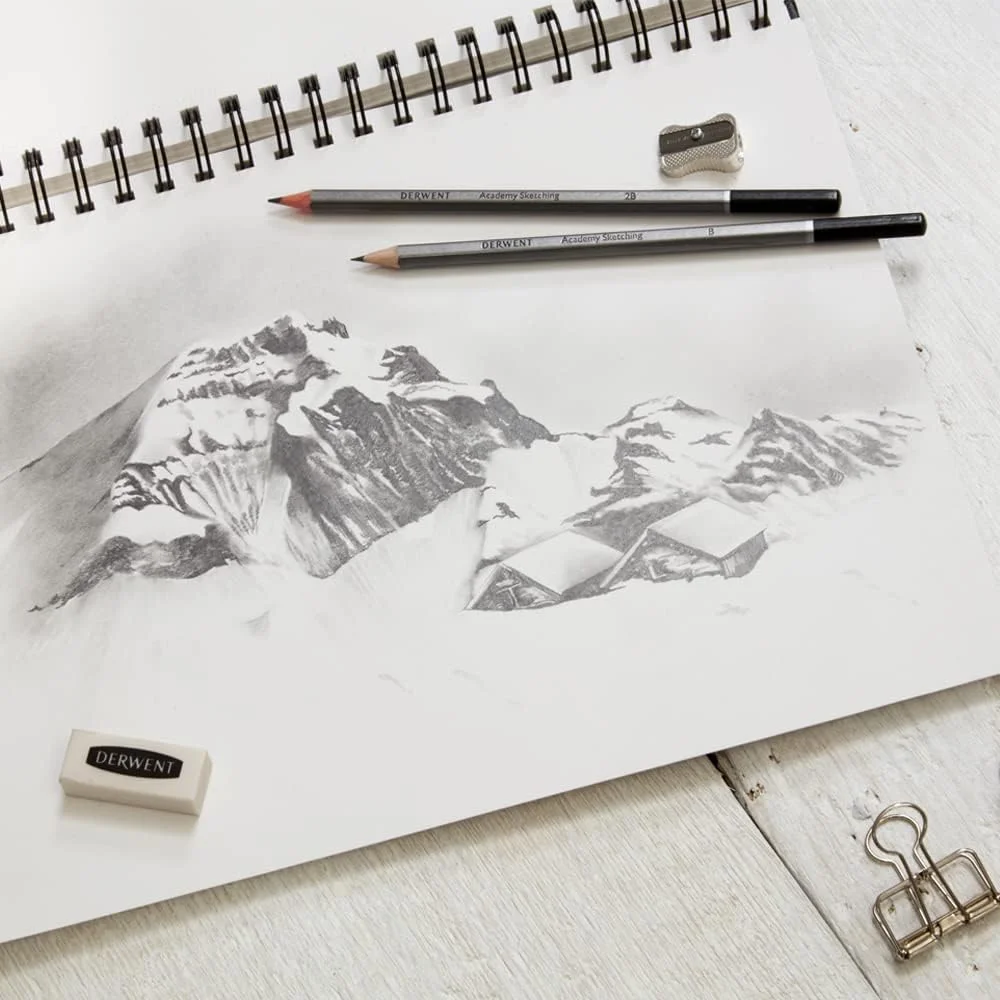 The Derwent Academy Sketching Pencil leaves a lasting mark with its soft, extra wide graphite strip. From quick, freestyle sketches to more thoughtful, detail work, these sketching are versatile and especially suited for beginning artists. Sketching pencils provide the foundation for most artwork so having a large range to choose from is ideal. For fine, straight lines choose a hard pencil that will hold its point. For work that includes smudging, the dark, smooth and soft B pencil is your best choice. Available in 12 degrees: 6B, 5B, 4B, 3B, 2B, B, HB, H, 2H, 3H, 4H and 5H. Soft pencils (B-6B) are best suited to sketching and blending. Harder pencils (HB-5H) are ideal for straight line and detailed work.