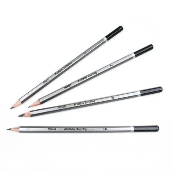 The Derwent Academy Sketching Pencil leaves a lasting mark with its soft, extra wide graphite strip. From quick, freestyle sketches to more thoughtful, detail work, these sketching are versatile and especially suited for beginning artists. Sketching pencils provide the foundation for most artwork so having a large range to choose from is ideal. For fine, straight lines choose a hard pencil that will hold its point. For work that includes smudging, the dark, smooth and soft B pencil is your best choice. Available in 12 degrees: 6B, 5B, 4B, 3B, 2B, B, HB, H, 2H, 3H, 4H and 5H. Soft pencils (B-6B) are best suited to sketching and blending. Harder pencils (HB-5H) are ideal for straight line and detailed work.