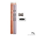 Enhance your artistic creations with our the Derwent Burnisher and Blender Set. The Blender pencils are designed to effortlessly blend colours and the Burnisher pencils add a striking shine to your artwork. Whether you’re a seasoned artist or just starting out, this comprehensive set includes everything you need. The package features two colourless blender pencils enabling you to seamlessly merge two or more hues, resulting in captivating new shades. To soften edges and refine strokes, employ the burnisher pencil, imparting a stunning photo-like finish. For a radiant shine without altering the colour, glide the burnisher over colours, achieving a captivating burnish effect. These pencils also prove invaluable in “wax resist” techniques. A perfect complement to Derwent Coloursoft Pencils, renowned for their velvety touch and intense hues, the blender and burnisher pencils ensure a flawless application of these vibrant colours. Designed to fit standard pencil sharpeners, they’re ideally paired with the Derwent Twin Hole Sharpener, guaranteeing mess-free, precise sharpening every time. The package includes 2 Derwent Blender Pencils, 2 Burnisher Pencils, an eraser, and a sharpener, all maintaining our commitment to professional-grade quality.