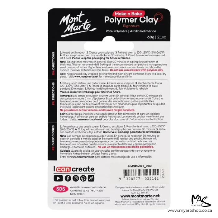 • Mont Marte Polymer Clay can be shaped and hardened in a standard household oven.