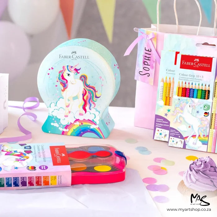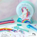 They adorn windows and TV screens, fashion accessories and storybooks – now the magical mythical creatures are also available for on-the-go: with Faber-Castell’s new Connector felt-tip pen set in snow globe shape, little unicorn fans can always have their favourite motif with them and be wonderfully creative at any time. The decorative metal case is filled with 33 bright Connector felt tip pens and offers a complete rainbow palette for magical moments of all kinds. This painting pleasure “to go” is the ideal gift for active young artists. Conveniently, the ink can be easily washed out of most textiles. And if something should get mixed up in the snow globe: The special clip on the cap makes it easy to put the felt pens together and tidy them up.