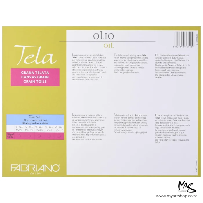 - Fabriano Tela Oil Painting Block Paper has an internal and external sizing that offers an ideal absorption for oil colours.
