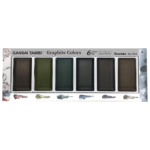 - The Graphite Kuretake Gansai Tambi Metallic Watercolour Set palette contains six colours: Graphite Blue (No. 260), Graphite Brown (No. 270), Graphite Green (No. 250), Graphite Red (No. 230), Graphite Violet (No. 261), and Graphite Yellow (No. 240).