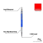 - Sharpening the 2mm lead to a perfect point is easy with the lead pointer built into the pencil cap.
