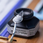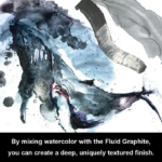 This ink can be mixed with other art mediums, such as watercolours. This combination allows for a wider range of effects and shades, as the graphite can be diluted with water to create lighter tones or used in thicker applications for more depth.