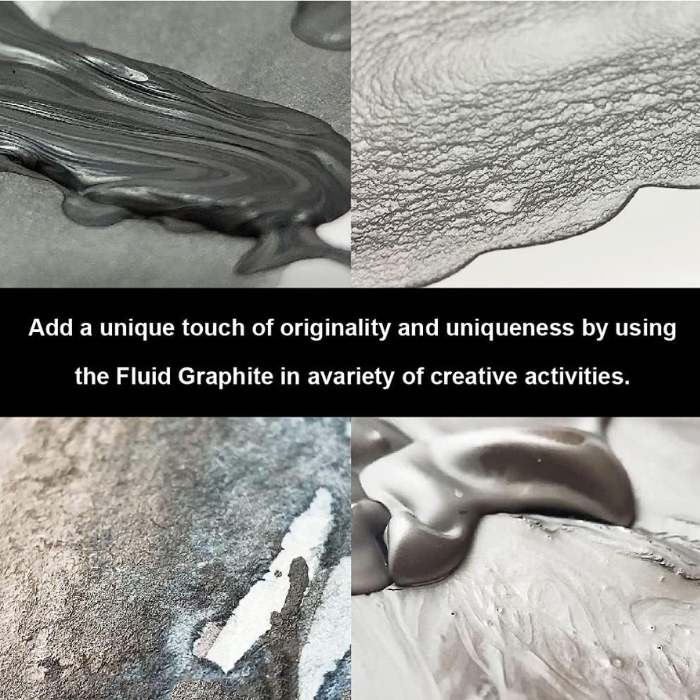 Using a brush to apply the Fluid Graphite allows for broad strokes and detailed work. The thick paste can be manipulated to create different textures and effects.
