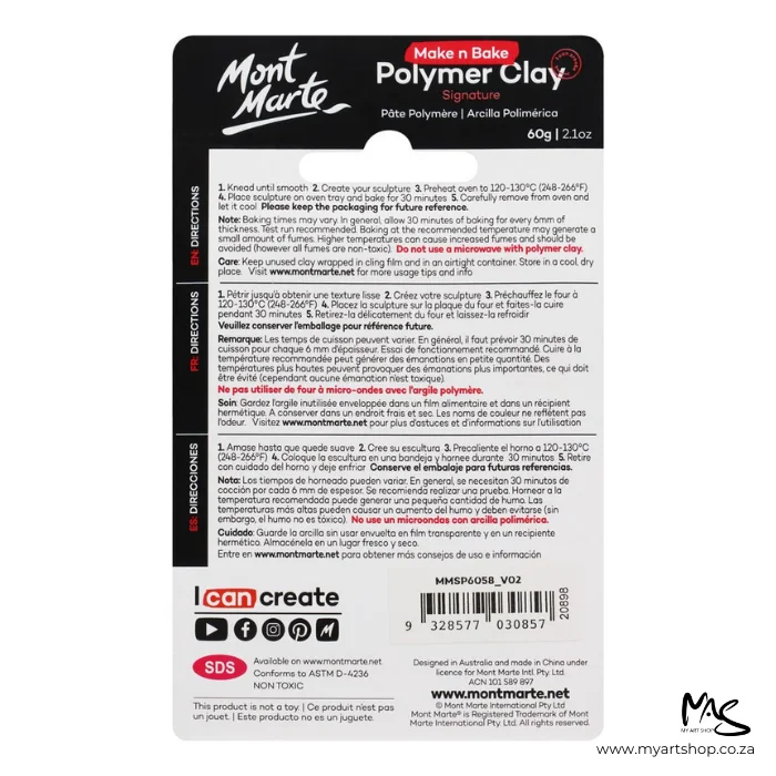 With the Make n Bake Polymer Clay, the creative possibilities are endless! This easy-to-use clay is malleable and can be hardened in a standard household oven. You’ll find the clay is soft, smooth and blendable, so that you can create new clean and vibrant colours. It also holds form and adheres easily to porous and non-porous materials making it ideal for any sculpture work. Once, hardened this oven bake clay can be drilled, sanded, cut, painted and even cleaned with warm soapy water. It’s ideal for use in press moulds, pattern making, figure and doll modelling, canes, beading, jewellery and many other sculptural projects. So, whatever you dream up, this super pliable coloured polymer clay will help bring your creation to life!