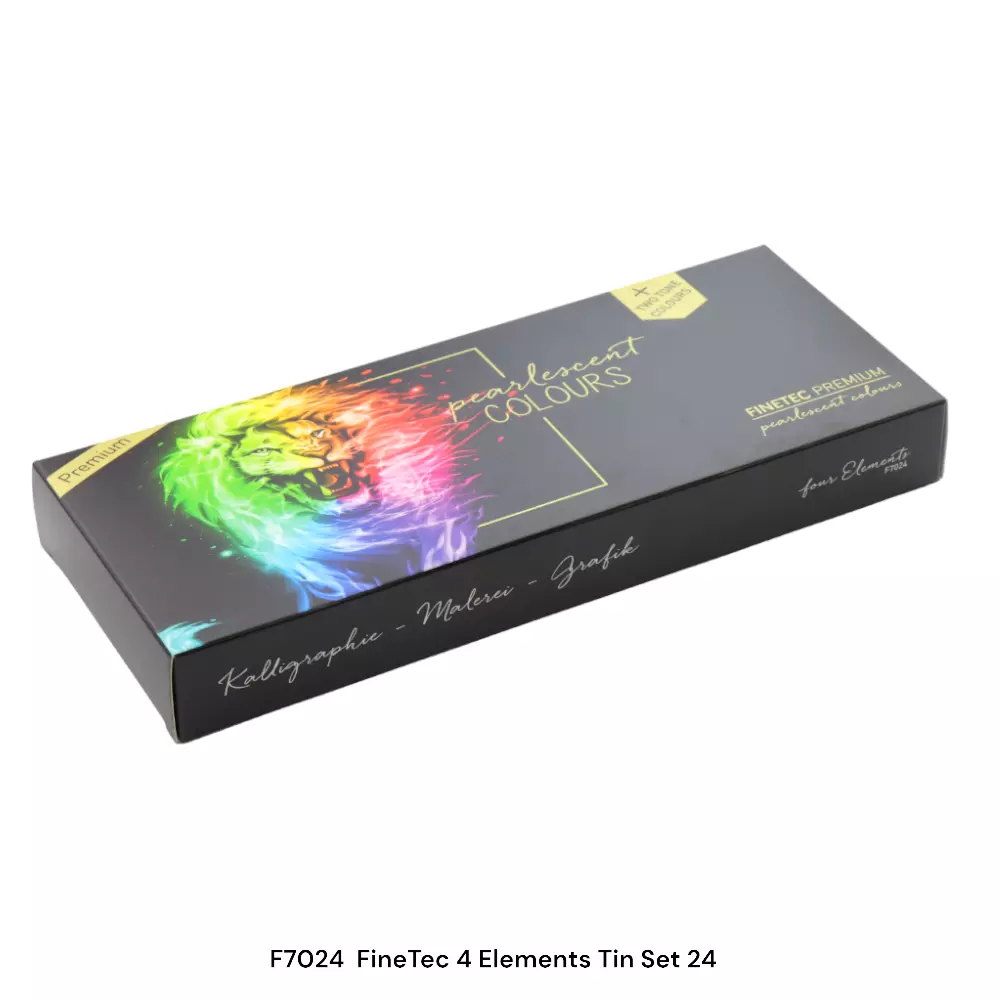 - Lion FineTec Pearlescent 4 Elements Watercolour Set contains 24 opaque pearlescent colours show their intense brilliance on all absorbent surfaces.