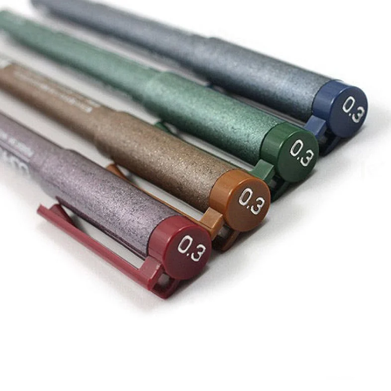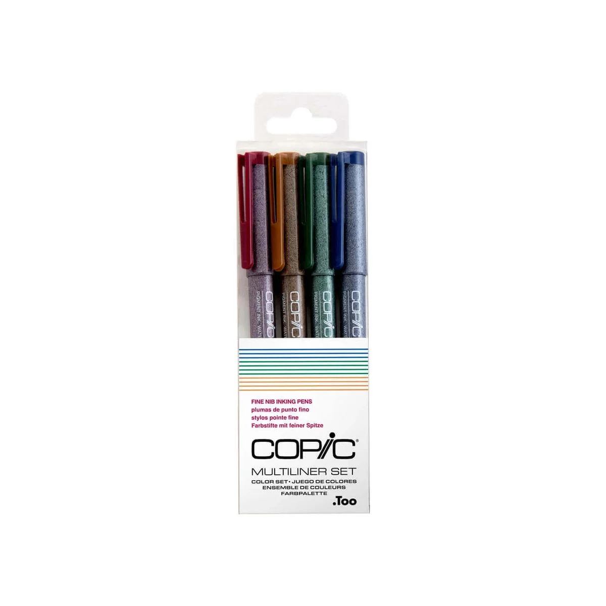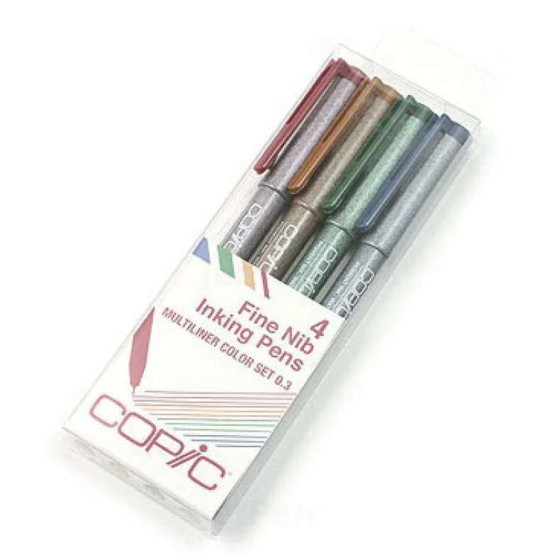 • The Mixed Colours Copic Multiliner Set includes 4 Multiliner pens, all with 0.3 mm tips: Cobalt, Olive, Sepia, and Wine.