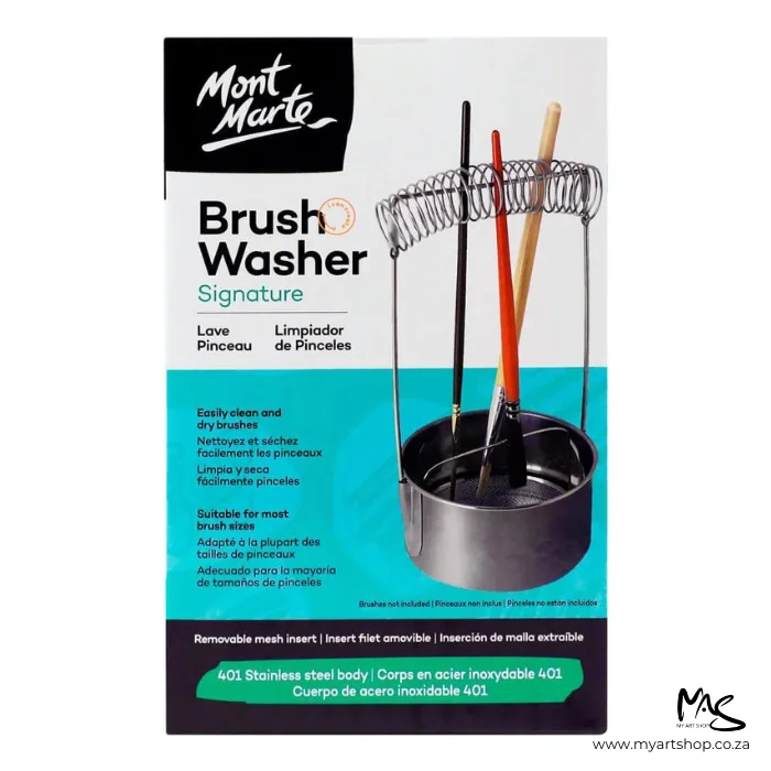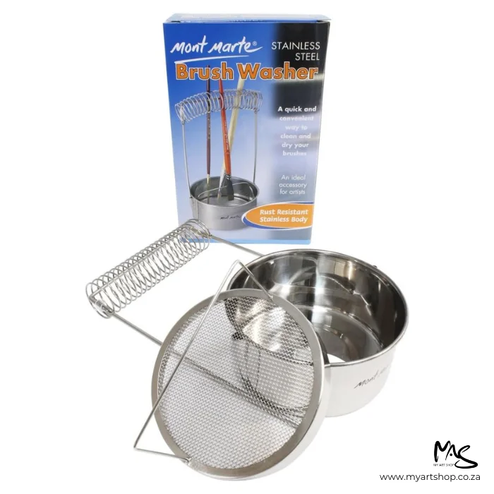 - The Mont Marte Stainless Steel Brush Washer is an invaluable accessory for artists and provides a quick and convenient way to clean and dry your brushes.