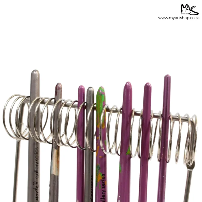 - The stainless steel spiral handle suspends brushes in turpentine or water, protecting brush bristles to give them a longer life.
