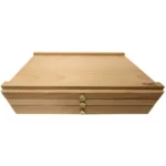 Enhance the organization of your art supplies with the Mont Marte Pastel / Pencil Box. Constructed from exquisite Beechwood, this box offers a beautiful and durable solution for keeping your pastels and pencils clean and well-protected. The top drawers feature fixed compartments, providing convenient storage for a variety of pastels and other art materials. Meanwhile, the large bottom drawer offers ample space without compartments, perfect for storing paints, brushes, and additional accessories. With its brass hardware, this box adds a touch of elegance to your creative setup. The Mont Marte Pastel Box measures 40cm x 25.5cm x 10cm, providing plenty of storage capacity. Please note that accessories are not included. Keep your art supplies organized and secure with the Mont Marte Pastel/Pencil Box, crafted from Beechwood, ensuring optimal protection for your valuable tools.