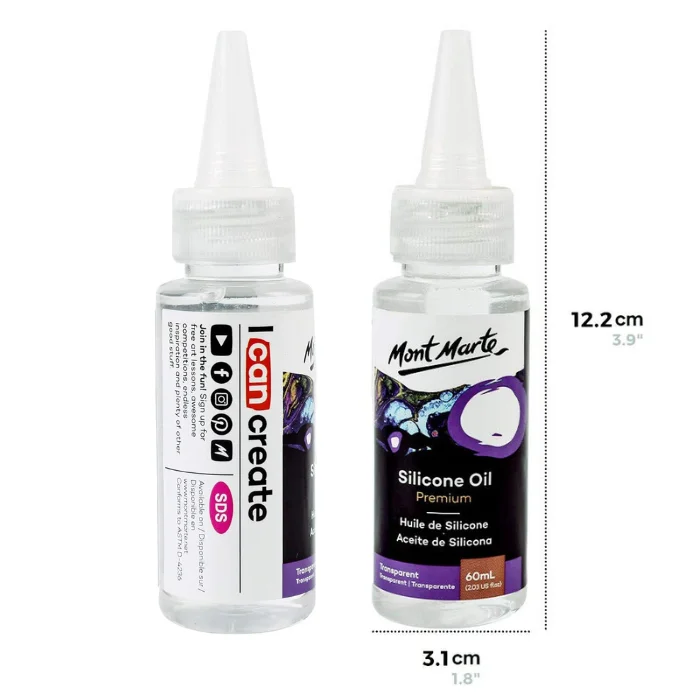 Mont Marte Premium Silicone Oil is a specialized product designed for use in acrylic painting, particularly in techniques such as acrylic pouring and fluid art. Here’s a concise overview of its features and usage: