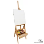 The Mont Marte Signature Box Floor Easel is purpose-built for secure painting display and convenience. Crafted from high-quality beech wood, it offers a reliable canvas height adjustment feature, accommodating various painting positions. With the inclusion of a spacious drawer, this easel allows for the organized storage of art supplies. It is designed to hold canvases up to 90cm in height, providing versatility for artists of different preferences. The easel arrives with assembly instructions and a screwdriver for straightforward setup, and it can be easily adjusted between seated and standing positions. The dimensions of the easel are 43.5cm x 44cm x 192cm (L x W x H), providing a stable and accommodating platform for your creative work.