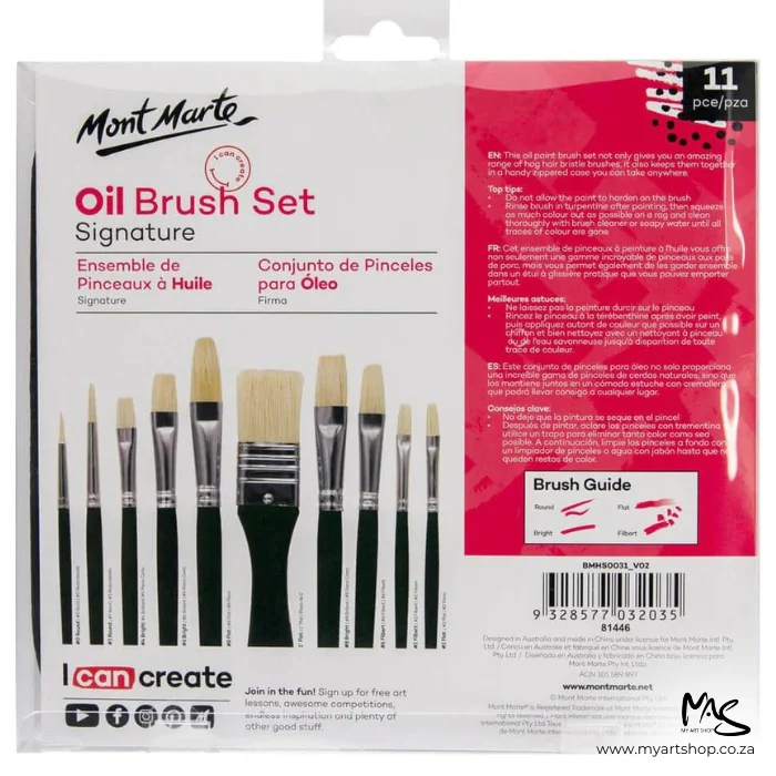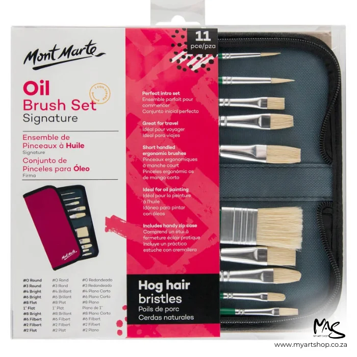 Mont Marte Signature Oil Brush Set: 11 piece set – Hog Bristle