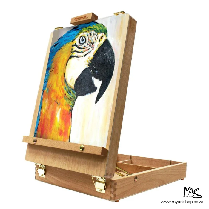 The Mont Marte Signature Tabletop Box Easel is a versatile and practical choice for artists. Designed with portability in mind, it offers ample space for art supplies and features a foldable design for easy transport and storage. Whether you’re in an art studio or dealing with limited space at home, this easel provides a flexible solution. Its setup and folding process is straight forward, ensuring user-friendly operation. Additional features include a comfortable leatherette handle, organized storage compartments for art supplies, a smooth beech wood finish, a sliding canvas adjuster, and a canvas rest. This easel is suitable for both painting and drawing on paper and canvas, making it a versatile tool for artists on the go.
