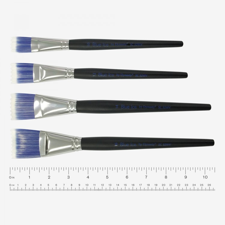 Dynasty Blue Ice Brushes are unique in their ability to move heavy paint without losing their shape, whilst also being able to create detailed work. These quality brushes are ideal for use with Heavy Bodied Oils and Acrylics. They are a versatile blended synthetic brush with a short matte black handle that is made of kiln-dried white birch. The blue base of the bristles is stiff, which makes the brush strong enough to pick up heavy-body paint, while the soft white tip maintains its chisel and point, creating detail work usually achieved by a finer brush. They produce a smooth flow on small or large surfaces creating a versatile brush for the versatile artist. They are available in a variety of shapes including BRIGHT, FILBERT, FLAT, OVAL, ROUND and WAVE. These quality brushes deserve to be treated with care to ensure their longevity. STORAGE and CLEANING are key! Take care of your brushes so they last longer.