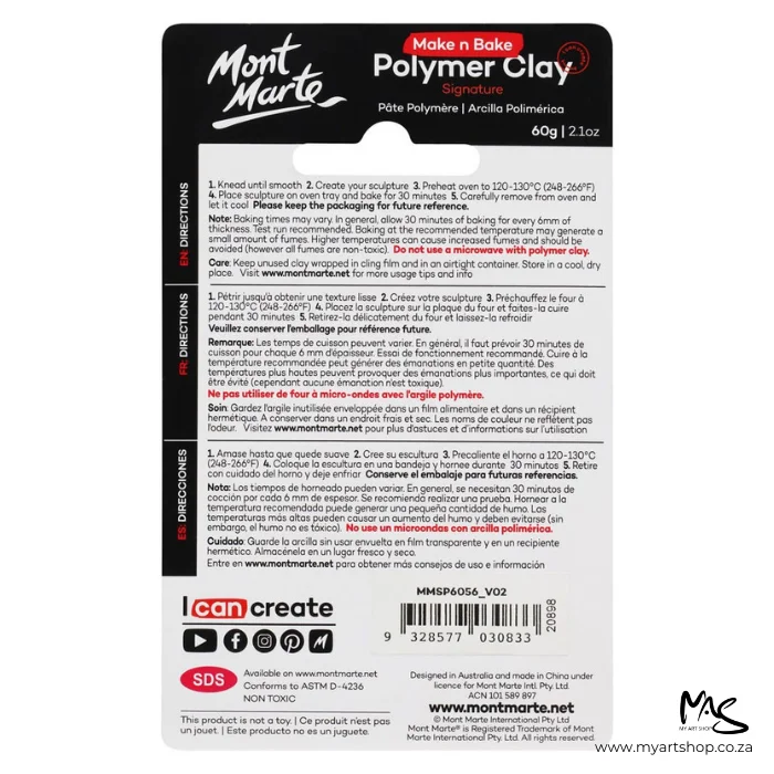 With the Make n Bake Polymer Clay, the creative possibilities are endless! This easy-to-use clay is malleable and can be hardened in a standard household oven. You’ll find the clay is soft, smooth and blendable, so that you can create new clean and vibrant colours. It also holds form and adheres easily to porous and non-porous materials making it ideal for any sculpture work. Once, hardened this oven bake clay can be drilled, sanded, cut, painted and even cleaned with warm soapy water. It’s ideal for use in press moulds, pattern making, figure and doll modelling, canes, beading, jewellery and many other sculptural projects. So, whatever you dream up, this super pliable coloured polymer clay will help bring your creation to life!
