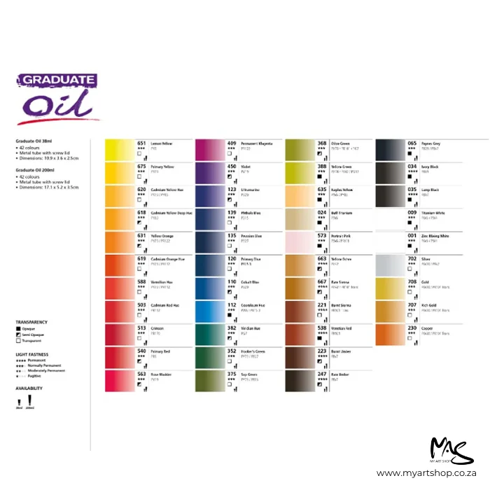 Daler Rowney Graduate Oil colours stand out as an ideal choice for novice artists, boasting a composition crafted from high quality pigments that ensure both durability and lightfastness. These oils are traditionally formulated with a soft, buttery consistency and a high loading of pigments. With excellent brush ability, they facilitate easy mixing and are suitable for both smooth brush applications and impasto techniques. The range includes forty-two vibrant colours, many of which consist of single pigments, resulting in brighter and cleaner mixtures. The unique formulation incorporates refined linseed oil and modern drying agents, enabling easy squeezing from the tube and effortless mixing on the palette. Notably, all colours are categorized as either Permanent 4**** or Normally Permanent 3***. Achieving a uniform low gloss satin sheen within 4 – 5 days, Daler Rowney Graduate Oils offer a convenient and efficient artistic experience, available in 38ml tubes.