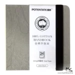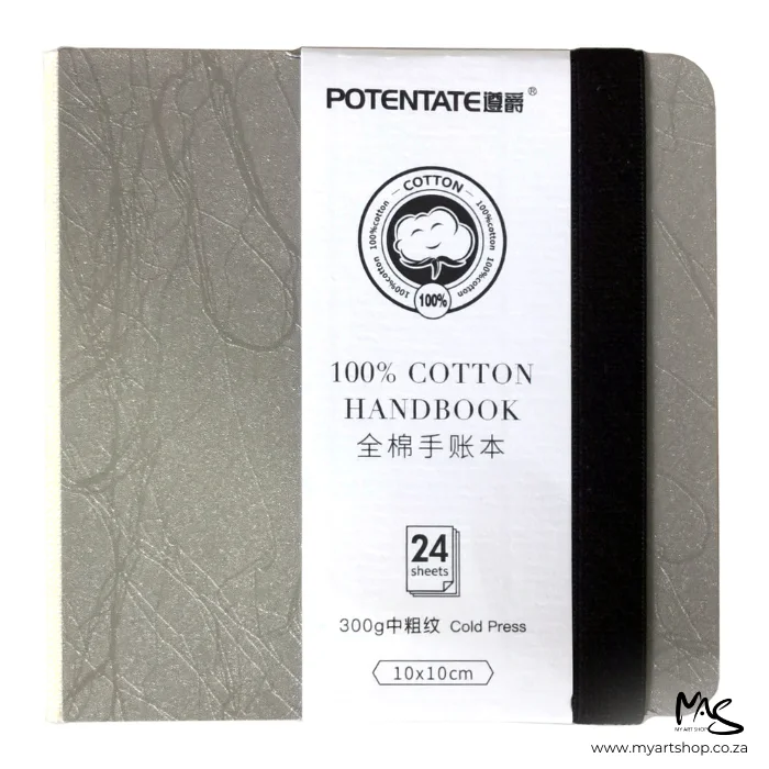 The Potentate Watercolour Handbook offers unparalleled convenience, featuring stitch binding that allows it to fold flat for easy use. Crafted with 300gsm cold press acid-free, non-fade watercolour paper, it accommodates both dry and wet media, making it perfect for watercolour and gouache techniques. This handbook provides a platform for experimentation and discovery on its high-quality 300gsm paper, ensuring exceptional results for both professional artists and amateurs. With 100% cotton composition, 24 sheets per handbook, and a size of 100 x 100mm, it meets diverse surface needs. The natural white paper with a slight texture enhances artistic expression, while features like the elastic band, acid-free pages, and hard cover ensure durability and longevity.