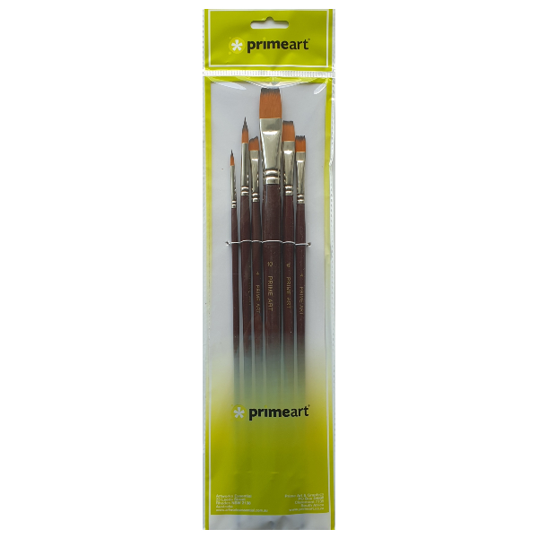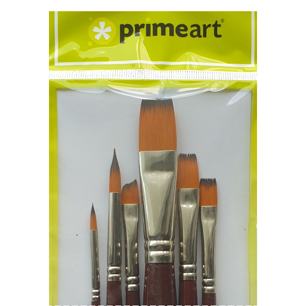 • Prime Art Golden Brown Synthetic 101 Brush Set B contains 6 assorted pieces.