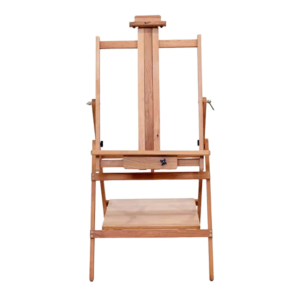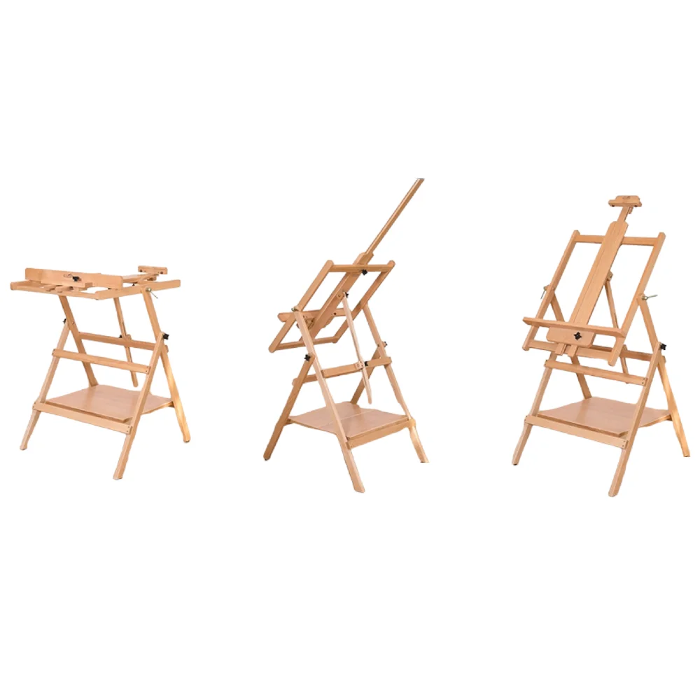 - The Prime Art Studio Multi Media Beech Oiled Easel folds down to handy table height and folds flat for easy storage.