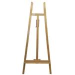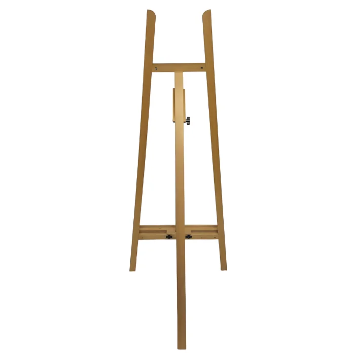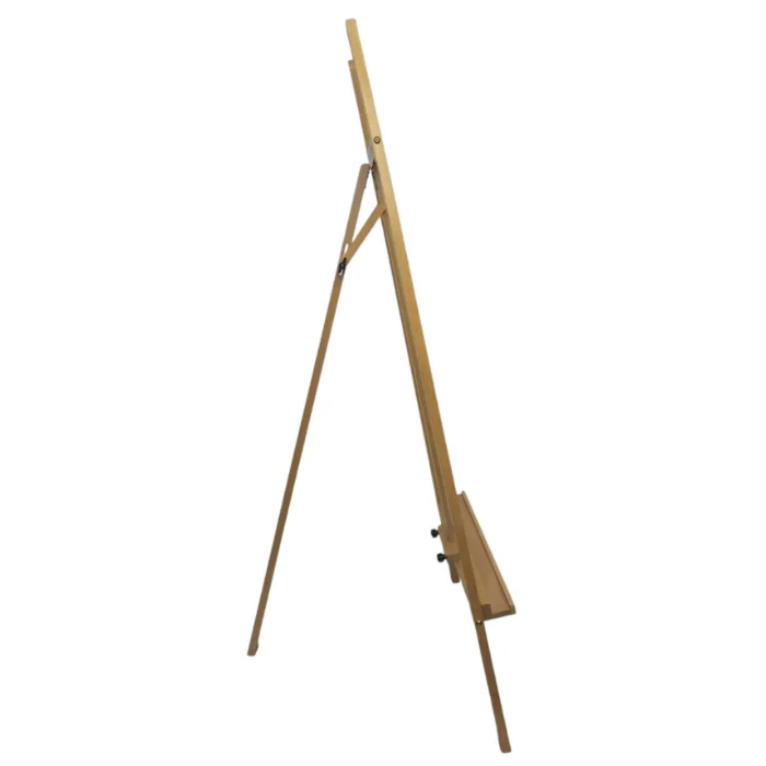 - Sturdy wooden A frame studio easel with fixed horizontal support for medium to large canvases.