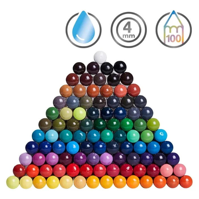 Sherbet Lemon, Lemon, Sun Yellow, Cadmium Yellow, Gold , Sicilian Yellow, Golden Sun, Golden Yellow, Sienna Gold, Mango, Cadmium Orange, Orange Sorbet, Burnt Orange, Tangerine, Mid Vermilion, Wild Flame, Paprika, Scarlet Pink, Persian Red, Poppy Red, Pink Flamingo, Hot Red, Chilli Red, Cherry, Carmine Pink, Crimson, Shiraz, Red Violet, Fuchsia, Deep Rose, Sugar Plum, Thistle, Dusky Purple, Amethyst, Mauve, Dark Purple, Deep Violet, Nightshade, Violet, Violet Blue, Lagoon, Peacock Blue, Lapis Blue, Navy Blue, Denim, Iron Blue, Deep Blue, Iris Blue, Bright Blue, Dark Cerulean, Deep Indigo, Sea Blue, Dark Aquamarine, Malibu, Mineral Blue, Green Aquamarine, Sea Breeze, Mallard Green, Mint Leaf, Teal Green, Iron Green, Ionian Green, Vivid Green, Olivine, Apple Green, Jungle Green, Field Green, Beech Green, Hookers Green, Felt Green, Lime Green, Light Olive, Spring Green, Fern, Leaf Green, Mustard, Amber, Tan, Oak, Saddle Brown, Baked Earth, Willow, Burnt Umber, Natural Brown, Red Oxide, Madder Brown, Dark Chocolate, Bark, Ink, Indian Ink, Chinese Ink, Charcoal Grey, Asphalt, Storm Dust, Payne’s Grey, Neutral Grey, Dark Mink, Ink Black, Antique White, Outliner