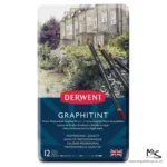 - The Set of 12 Derwent Graphitint Pencils contains the follwoing colours: Port, Aubergine, Dark Indigo, Slate Green, Ivy, Chestnut, Cool Brown, Cocoa, Storm, Midnight Black, Cloud Grey and Cool Grey