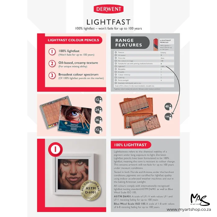 - Derwent Lightfast features an oil-based, opaque and vibrant coloured core, that is 100% lightfast.