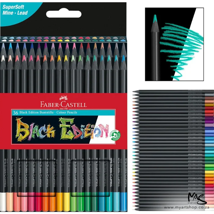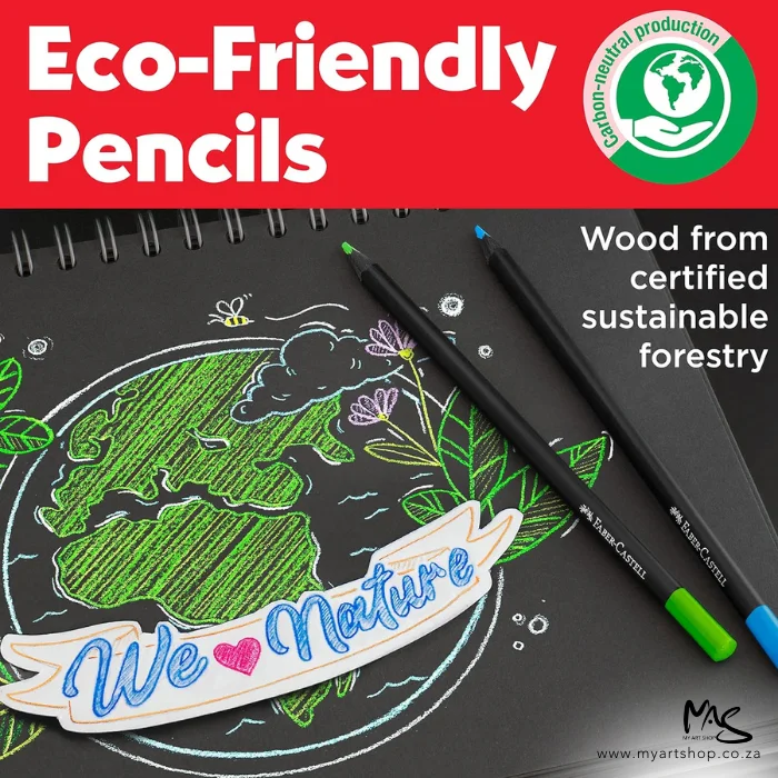 The Faber Castell BLACK Edition Colour Pencils have a wonderfully soft and vibrant colour laydown thanks to their super soft lead. The high pigmentation of the lead makes them ideal for painting and drawing techniques on light, coloured and dark paper. The ergonomic triangular shape of the pencils automatically ensures the correct grip position and optimum comfort when drawing and painting.
