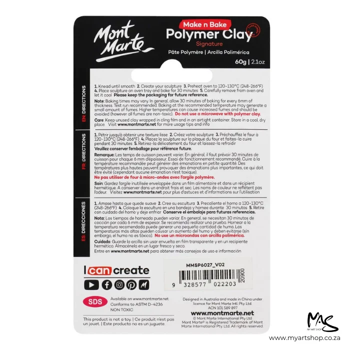 With the Make n Bake Polymer Clay, the creative possibilities are endless! This easy-to-use clay is malleable and can be hardened in a standard household oven. You’ll find the clay is soft, smooth and blendable, so that you can create new clean and vibrant colours. It also holds form and adheres easily to porous and non-porous materials making it ideal for any sculpture work. Once, hardened this oven bake clay can be drilled, sanded, cut, painted and even cleaned with warm soapy water. It’s ideal for use in press moulds, pattern making, figure and doll modelling, canes, beading, jewellery and many other sculptural projects. So, whatever you dream up, this super pliable coloured polymer clay will help bring your creation to life!