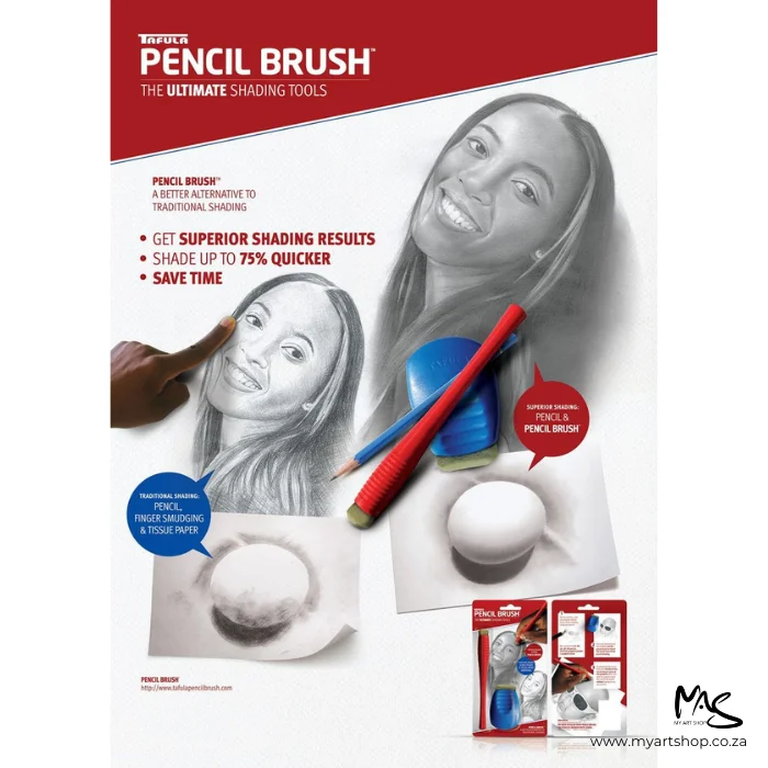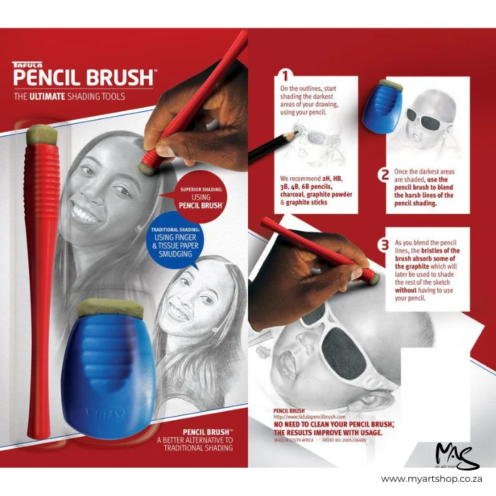 • The Tafula Pencil Brush Shader Set Includes: 1 x small brush with a long red, easy-grip handle for more detailed shading and 1x wide brush with a blue short, but sturdy, easy grip handle for larger shading areas.