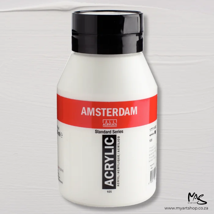 Amsterdam Standard Series acrylic paint in Titanium White (105) is an opaque color with an excellent lightfastness (+++).
