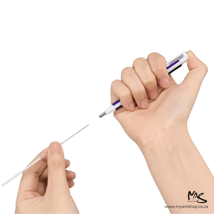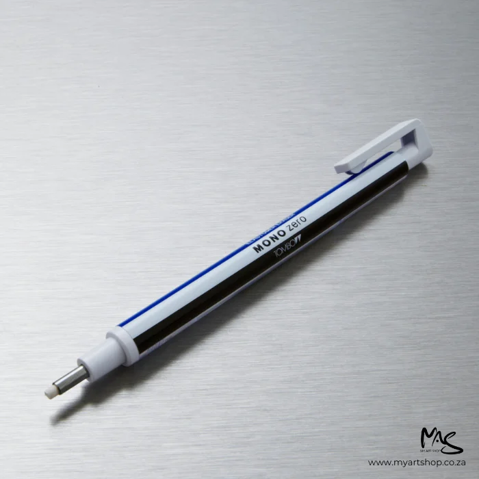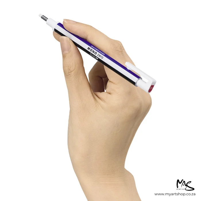 The Tombow MONO ZERO eraser offers reliable and detailed precision for artists seeking pinpoint erasing. Crafted with the legendary Tombow MONO eraser material known for its exceptional erasing quality, this eraser is housed in a pen style casing, ensuring a comfortable grip and controlled erasing with a small surface area. Perfect for erasing small details or removing thin streaks, such as drawing whiskers, the MONO ZERO eraser features a convenient click mechanism on the cap, akin to a retractable ballpoint pen. With a diameter of 2.3mm, the round eraser is ideal for intricate work. Additionally, the erasers are easily refillable, adding to their convenience.