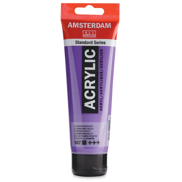 Royal Talens Amsterdam Acrylic Paints boast an exceptional level of lightfastness, ensuring that artworks maintain their original colour vibrancy even after decades, thanks to the use of pure and non-fading pigments. The paints create an enduring result with an exceptionally durable paint film, composed of 100% acrylic resin as the binding agent. This durability extends to alkali resistance, making them suitable for wall paintings / murals. Thinning the paint with water is effortless, and when applied thinly, it can dry within 30 minutes. The specific preparation method renders Amsterdam Acrylics practically odourless, providing a comfortable painting experience. The paints are exceptionally durable, making them suitable for long-lasting results, especially for murals. With no need for solvents, these acrylic paints offer environmental friendliness and convenience. The range includes 90 brilliant colours, featuring metallics, pearls, and reflex colours, all available in 120ml tubes.