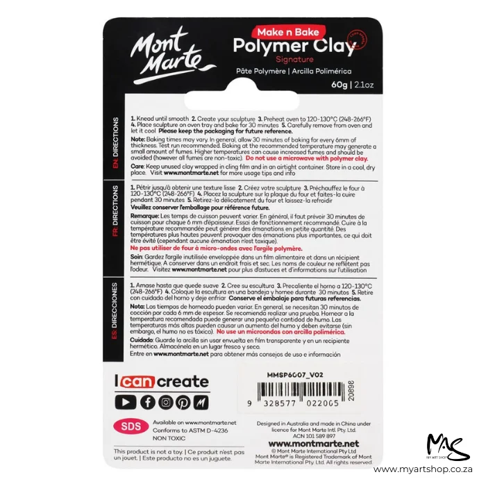 - Mont Marte Polymer Clay can be shaped and hardened in a standard household oven.