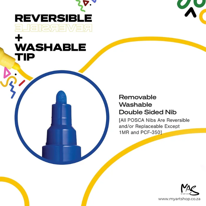 Most POSCA tips are washable and replaceable (PC-1MC, PC-3M, PC-5M, PC-7M, PC-8K and PC-17K).