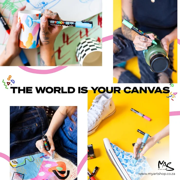 • POSCA is a creative tool that can be used on all surfaces, providing permanent or temporary results depending on the surface.