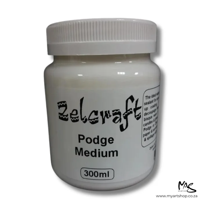 Zelcraft Podge Medium is a versatile and water-resistant adhesive and sealant designed for various applications, making it an indispensable tool for craft enthusiasts and DIY projects. This multi-purpose medium serves as an excellent choice for creating multi-layer build-up coatings in decoupage, ensuring secure and lasting bonds. It finds its utility on a wide range of surfaces, including decoupage blanks, wood products, bisque ware, terra cotta, perspex, candles, and glass. Whether you’re working on crafts or intricate projects, Zelcraft Podge Medium offers reliability and adaptability to suit your creative needs, without compromising on quality or water resistance.