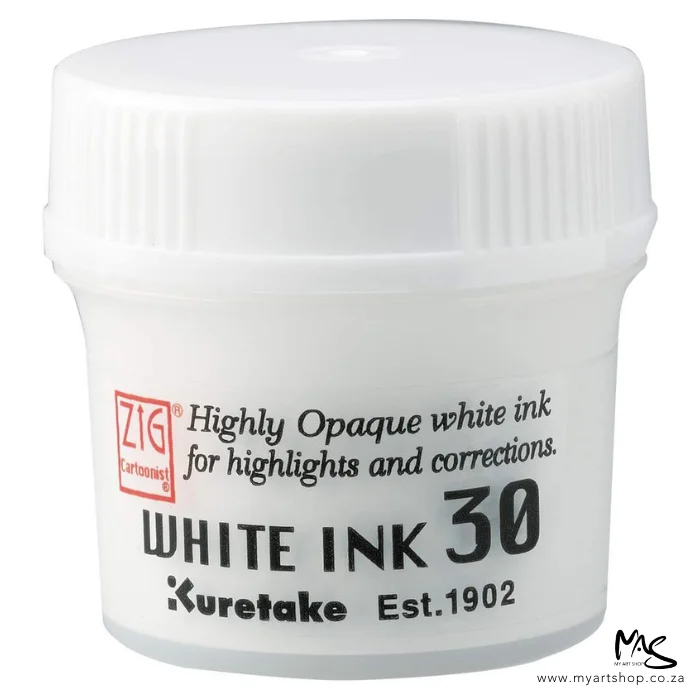 - ZIG Cartoonist White Ink is a water-based pigment ink that is opaque, lightfast, odourless, and xylene-free.