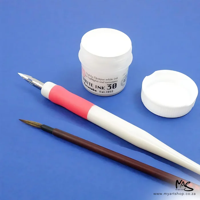 - ZIG Cartoonist White Ink is fade-resistant and available in a 30g jar.