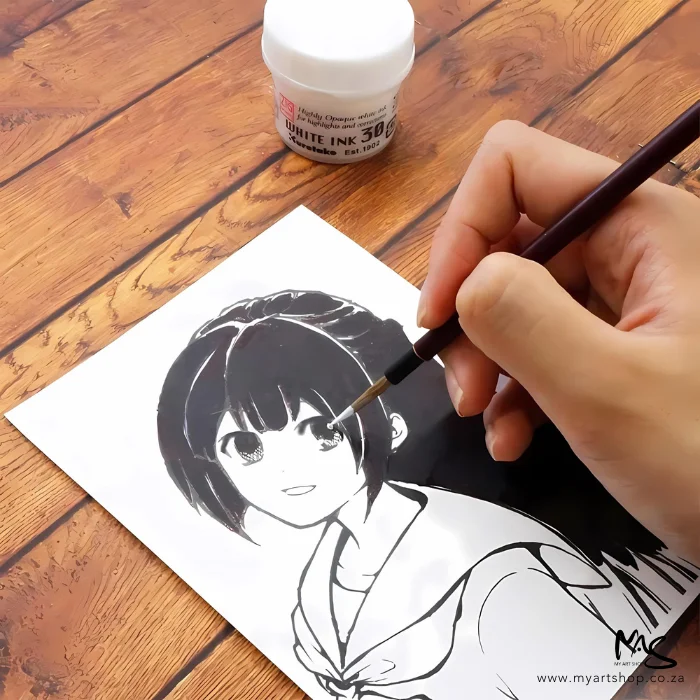 It is commonly used for drawing lines, adding highlights to illustrations or manga, calligraphy, lettering, outlining, and other crafts. The ink’s highly opaque nature makes it ideal for corrections and highlighting in artwork. Additionally, it can be used for calligraphy, sketching, inking illustrations, and ink washing, offering artists a reliable and versatile medium for their creative projects.